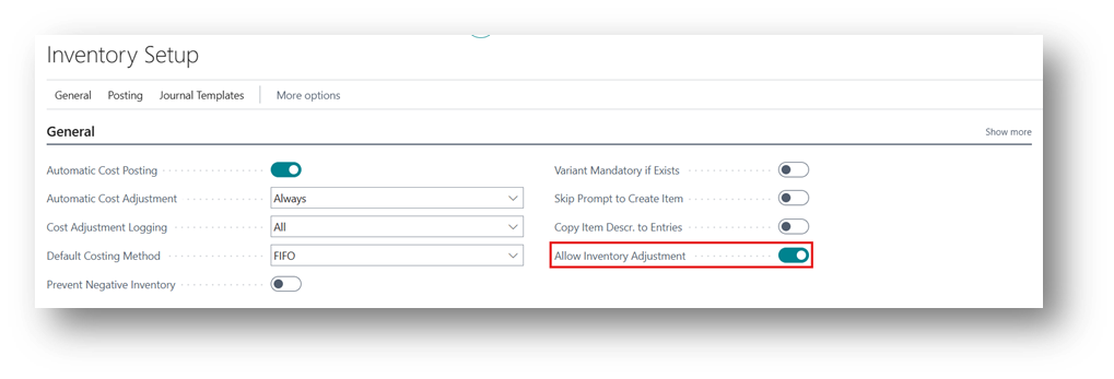 Specifies if you want to allow manual adjustment of the inventory in the item card.