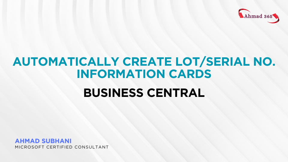 In today’s post, I want to share a small but very useful feature in Dynamics 365 Business Central—how you can automatically create Lot/Serial No. Information Card. {I am assuming that you know how to Process Item Tracking in D365BC}