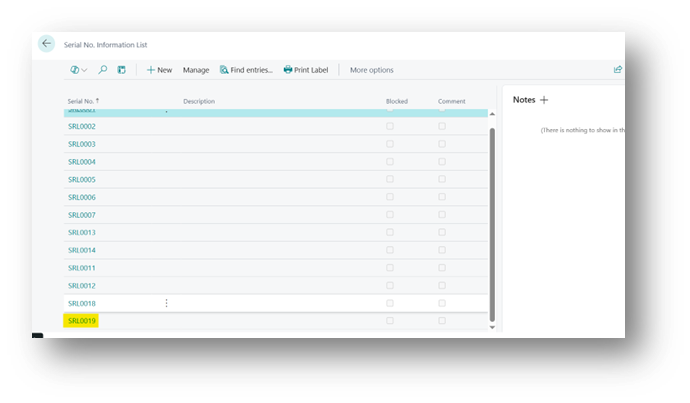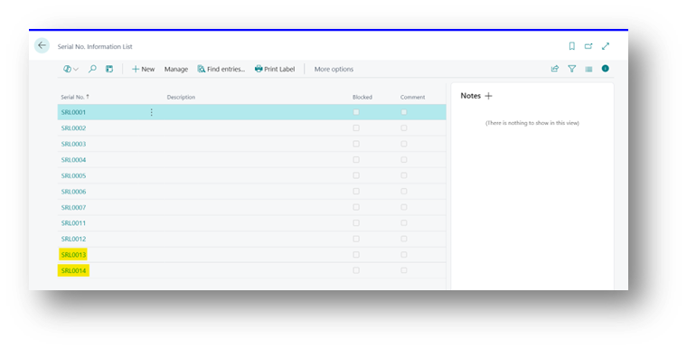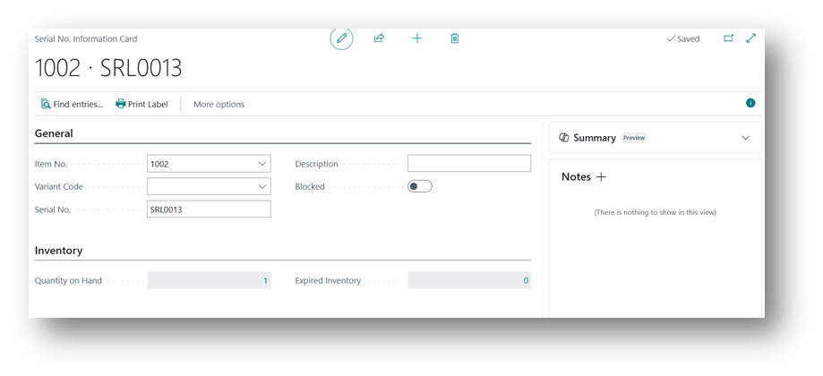 Once the posting is complete, Business Central will automatically generate the Serial No. Information Card for you.