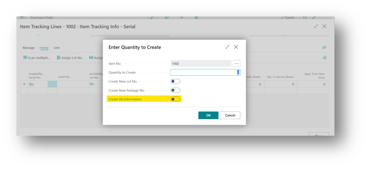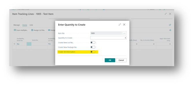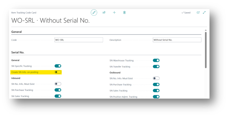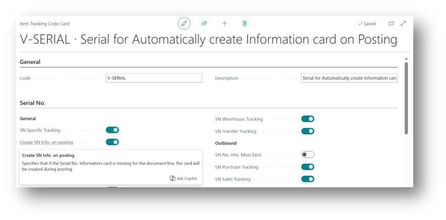 When enabled, Business Central will automatically create the Serial No. Information Card during posting if it doesn’t already exist.