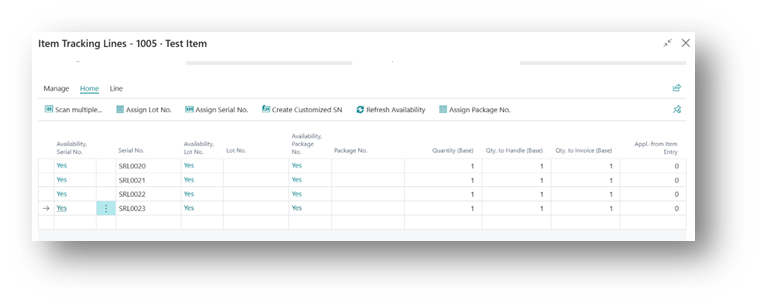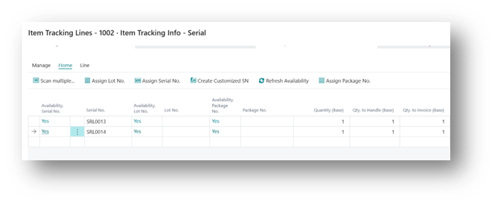 - On the line, go to Line → Item Tracking Lines.