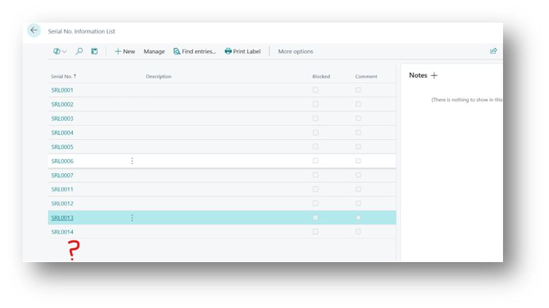- At this stage, you can check that the Serial No. Information Card does not yet exist.