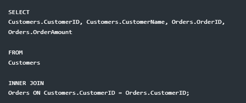 - Orders: OrderID, CustomerID, OrderAmount