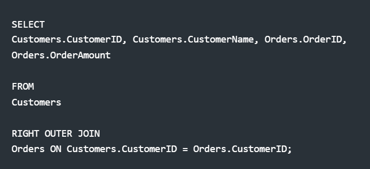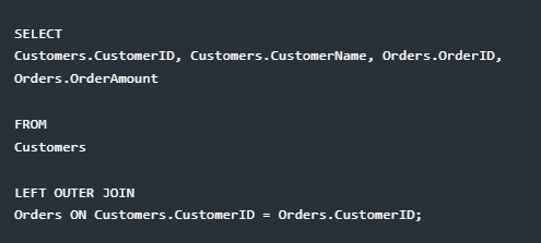 Explanation: All orders are shown. Orders without matching customers have NULL values for customer fields.