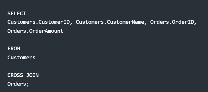 Explanation: Each customer is paired with every order, resulting in a complete pairing of rows from both tables.