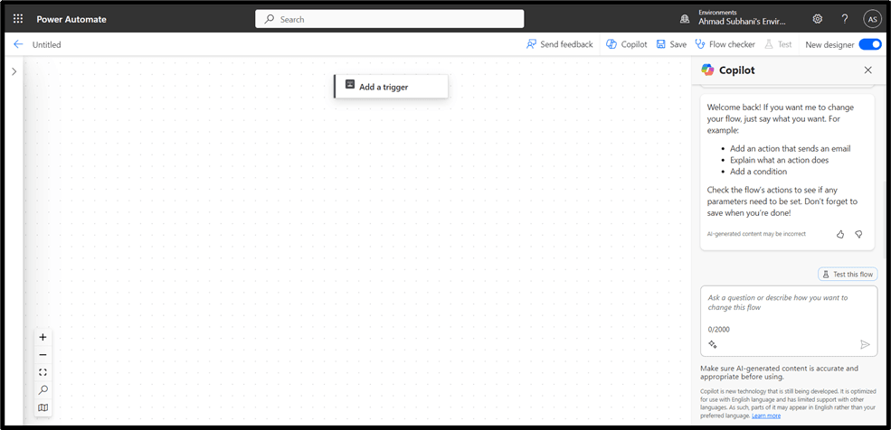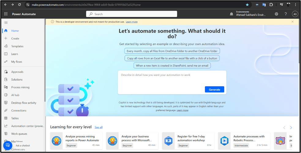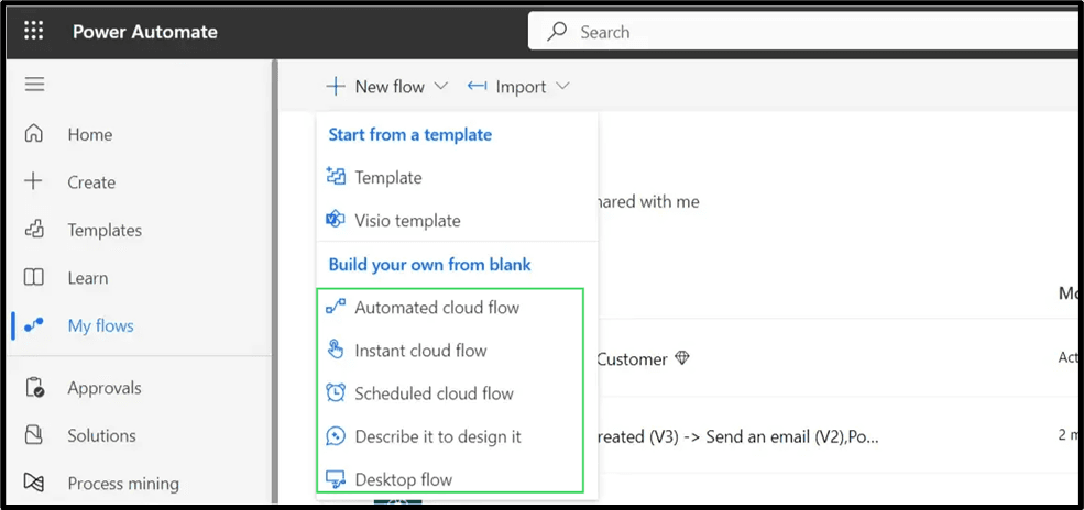Home Page of Power Automate