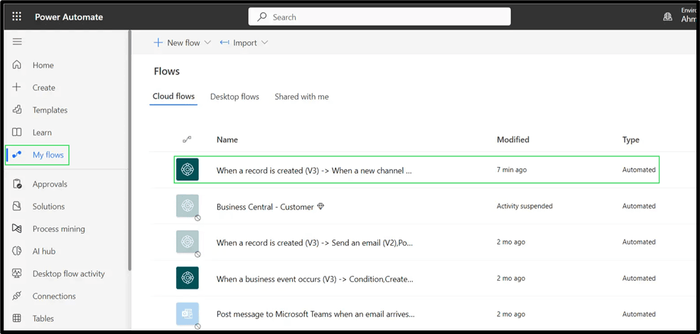 If I go to the “My Flow” option the we can see that flow in here. And if you want to check when it is created then see the Modified Column.