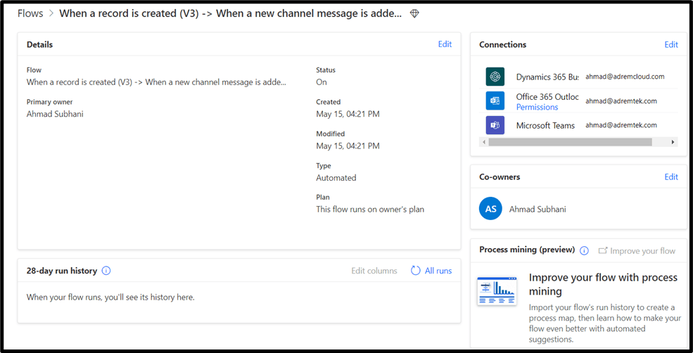 And too check the details we can click on the Flow. And you can check the Status of the Flow that it is enabled or not.