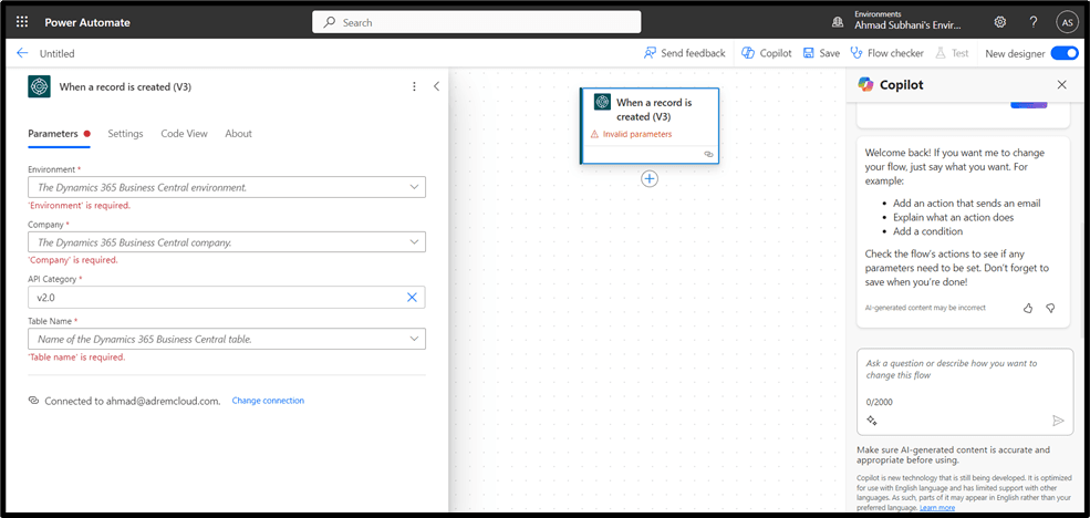 - Create Automated Flow: Imagine this – every time a New Sales Order is entered into Business Central, an Automated Email Notification is sent to the Sales Team, ensuring prompt action without Manual Intervention.