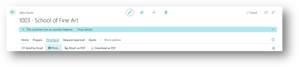 - On the Header, click Print/Send, then choose whether to print the quote or send it directly to the customer via email.