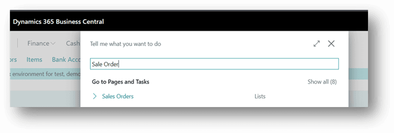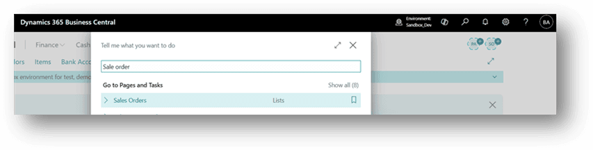 - Click the Search button or press Alt + Q on the application bar, type Sales Orders and then choose the related link.