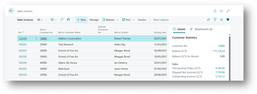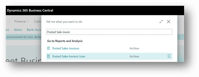 - Click the Search button or press Alt + Q on the application bar, type Sales Invoices, and then choose the related link.