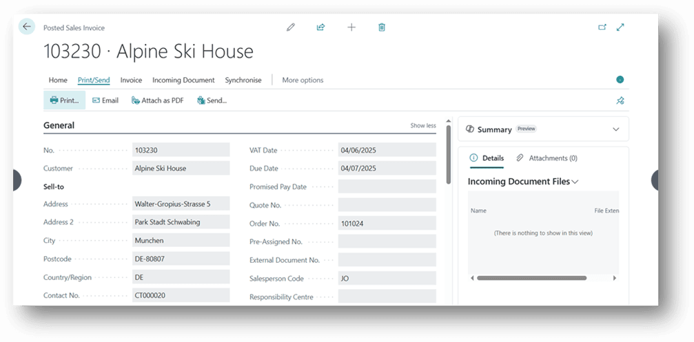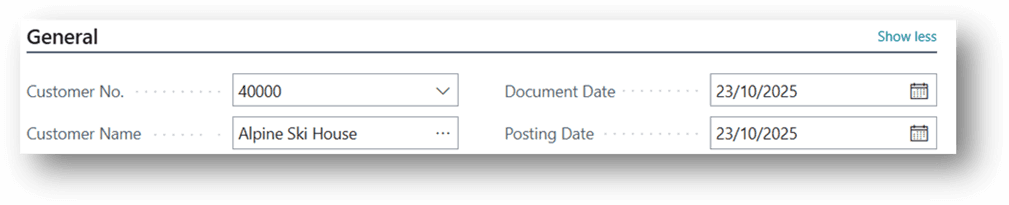- Most of the remaining information (such as currency, payment terms, address, and salesperson code) will be automatically published from the Customer Master Data. Please review these details and make any changes as needed.