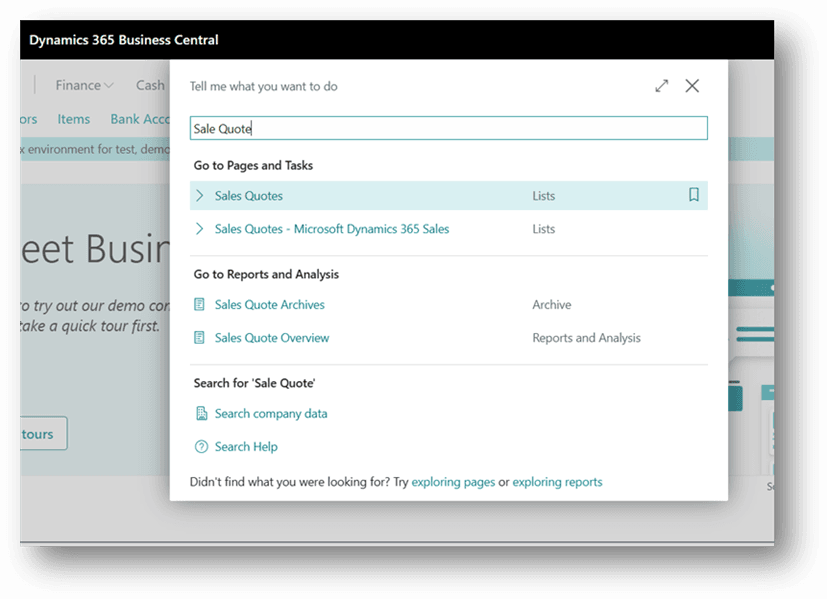 - Click the Search button or press Alt + Q on the application bar, type Sales Quotes, and then choose the related link.