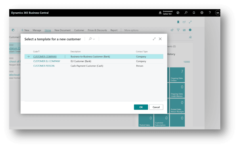 - Then you can choose the customer card template. For example, “Customer EU Company“.