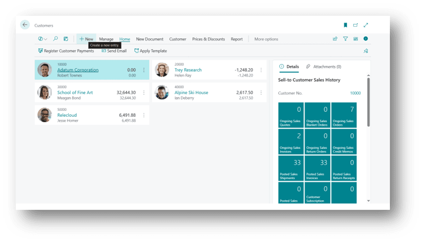 - In the Customer list, click New to create a new Customer record.