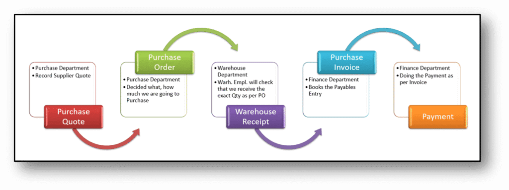 Once a Purchase Order has been issued, the Warehouse or Store Department comes into action. They are responsible for receiving and verifying the goods when delivered by the vendor.