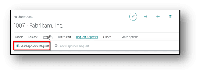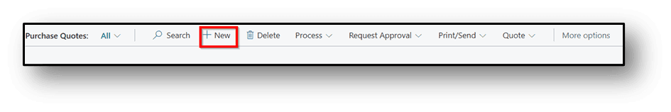 - Click the search button or Alt+Q on the application bar, enter Purchase Quotes, and then choose the related link.