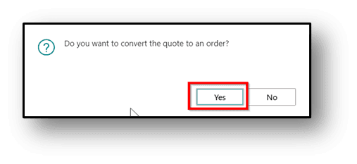 - After clicking on the order, system will ask for the final confirmation before converting into the purchase order. Then, click on Yes.