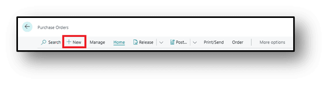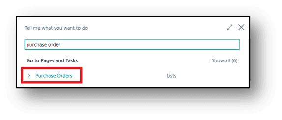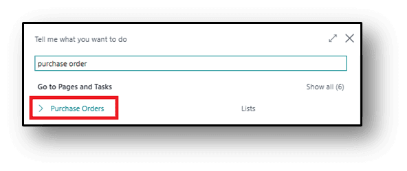 - Click the search button or Alt+Q on the application bar, enter Purchase Orders, and then choose the related link.