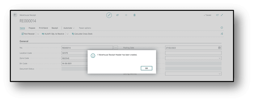 - Based on security permission, clicking Create Warehouse Receipt will open a new window which will display created warehouse receipt.
