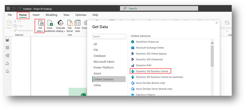 - Choose the appropriate web service connector, such as OData Feed or another supported connector depending on your setup.